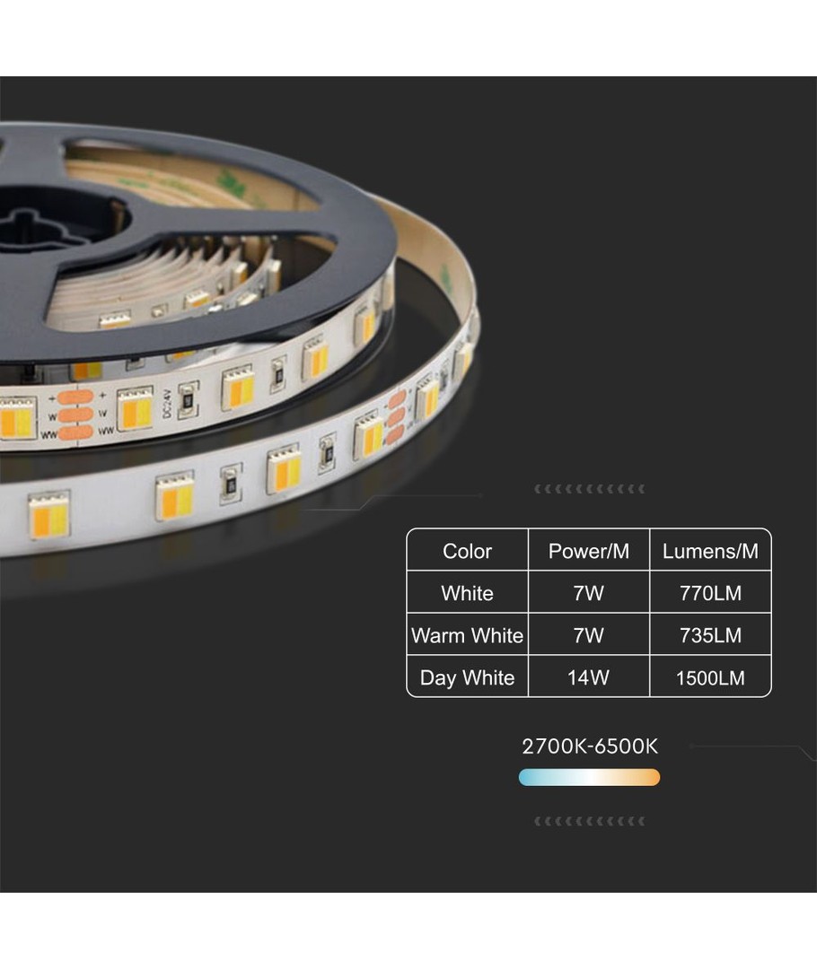 120 LED List Belysning - 14W/m, CCT 3i1, IP65, 24V V-TAC Expandera