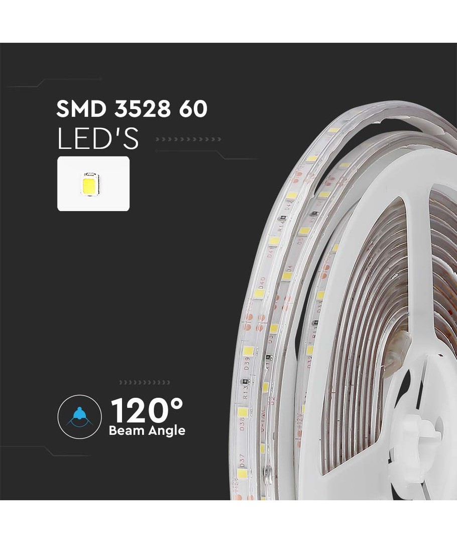 Denna LED-strip är idealisk för olika applikationer tack vare sin breda spridning på 120 grader. Detta säkerställer en jämn fördelning av ljuset, vilket bidrar till en enhetlig och behaglig belysning.