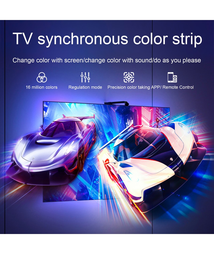 Förvandla din TV-tittarupplevelse med denna innovativa LED-remsa som erbjuder en längd på 3,8 meter, speciellt designad för TV-apparater mellan 55-65 tum. Denna remsa är utrustad med en integrerad TV-kamera för en unik ljuseffekt och atmosfär i ditt rum.