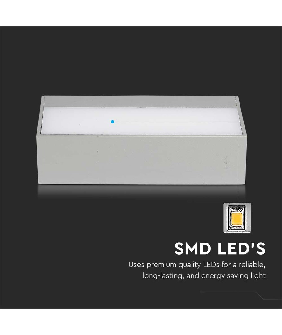 Hållbarhet och användning: Lampan är certifierad med IP65, vilket innebär att den är trygg att använda i utomhusmiljöer då den tål både vattenstänk och regn. Det gråa höljet ger ett elegant och tidlöst uttryck som enkelt smälter in i olika arkitektoniska stilar.