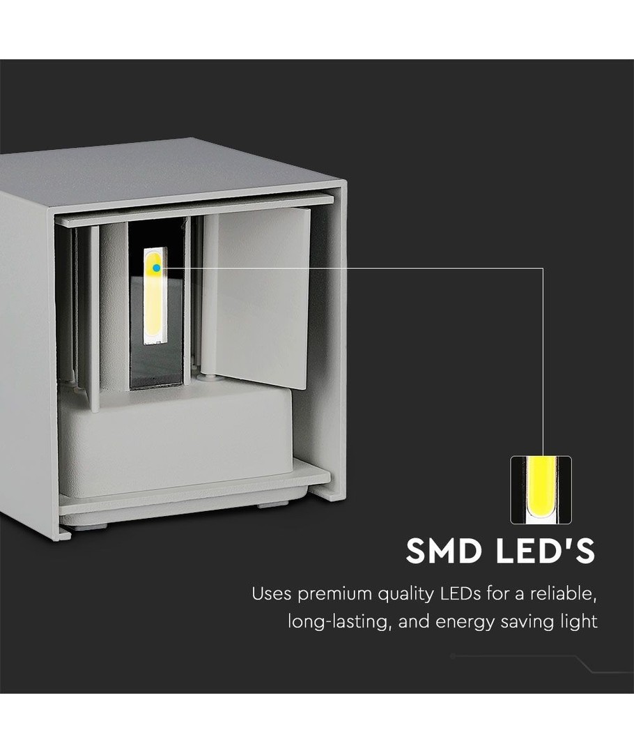 Denna lampa erbjuder högkvalitativt LED-ljus med en kontrollerad ljusspridning som kan justeras för att anpassa belysningen efter dina behov. Den grå, fyrkantiga designen smälter väl in i olika arkitektoniska stilar, vilket gör den till en mångsidig och estetiskt tilltalande komponent i ditt utomhusområde.