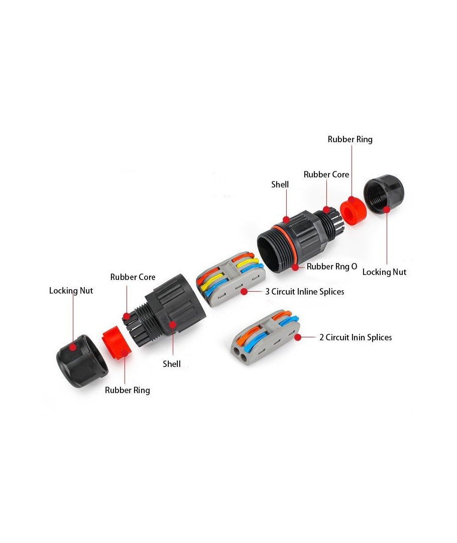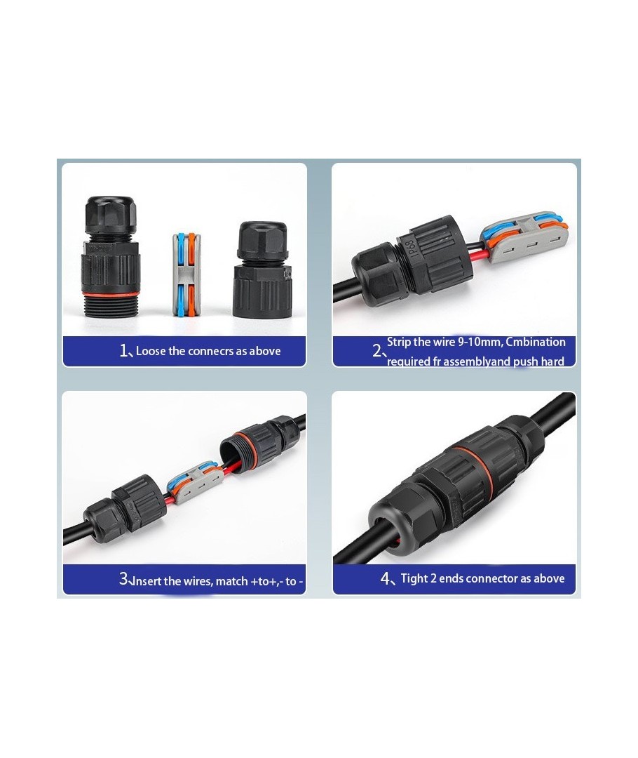 IP68 vattentät, svart, för skarvning av kablar, 3-ledare