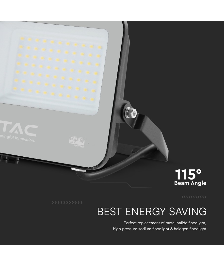 Med en effekt på 50W kan denna projektör lysa upp stora områden med sin ljusstyrka på 6750 lumen. Den breda spridningen på 115 grader säkerställer en jämn och effektiv fördelning av ljuset, vilket gör den idealisk för många olika användningsområden.