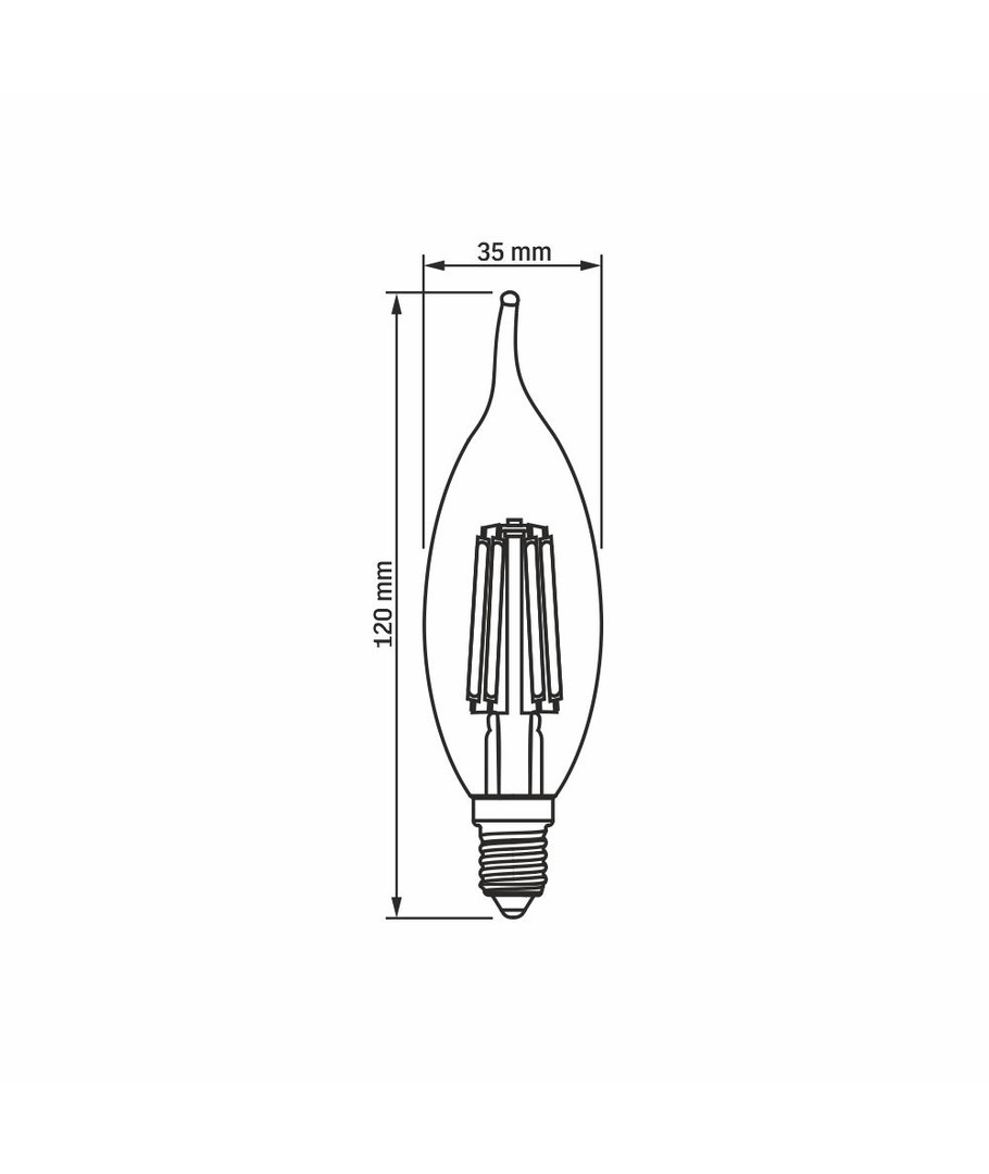 Färgen på ljuset är extra varm vit vilket påminner om de traditionella glödlampornas mjuka sken. Den koltrådsfärgade flammadesignen i kombination med den bärnstensfärgade finishen ger en nostalgisk men stilren känsla.