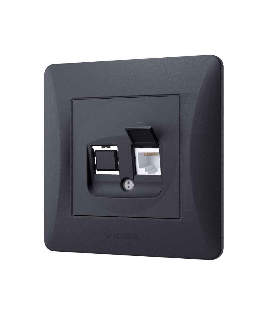 Binera CAT6 nätverksuttag - RJ45, IP20, grafitsvart, 86x86 mm Videx Expandera