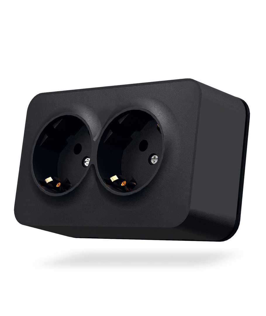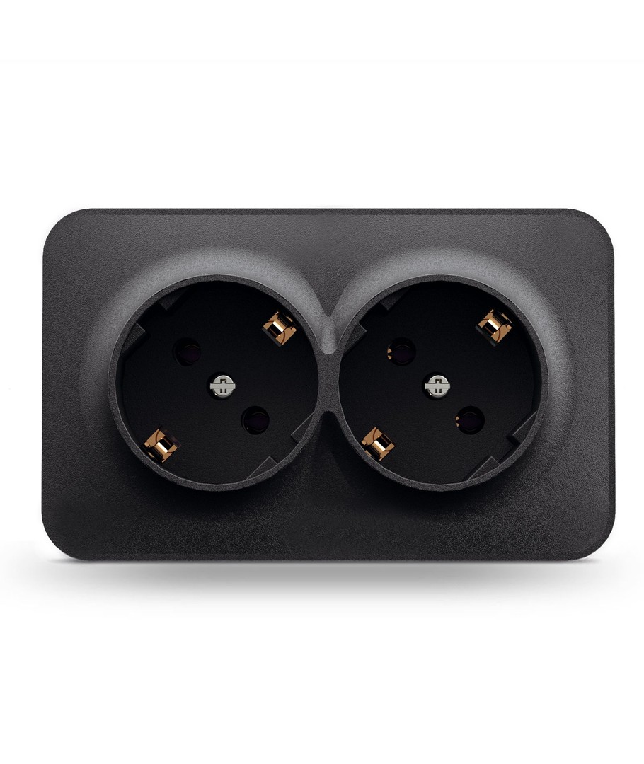 Den infällda dubbla Schuko-uttaget i matt svart erbjuder en perfekt kombination av design och funktionalitet.
