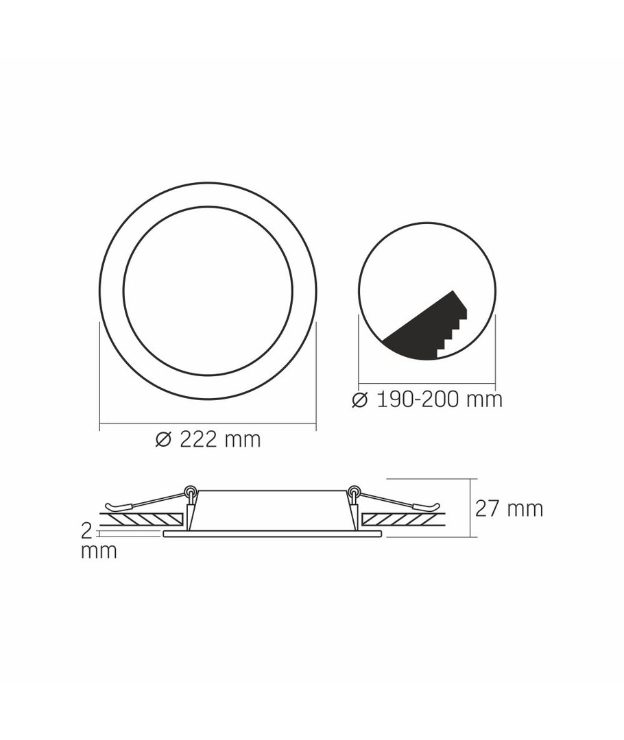För maximal prestanda är denna downlight utrustad med professionell drift och god kylkapacitet, vilket bidrar till dess långa livslängd. Den kommer med en integrerad ljuskälla och är designad med måtten 222 x 222 x 27 mm.