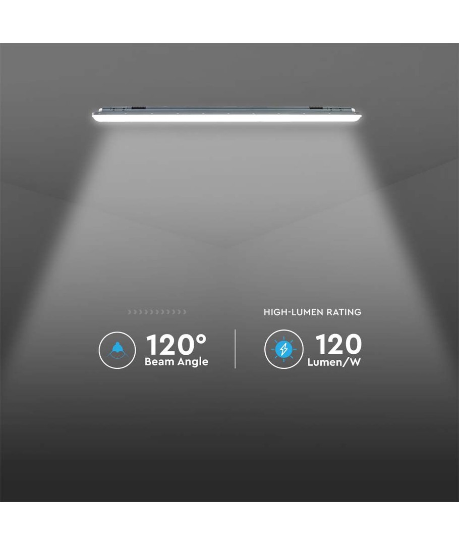 Detta lysrör erbjuder en hållbar och ekonomisk belysningslösning, perfekt för både inomhus- och utomhusbruk. Med en effekt på 36W och en ljusstyrka på 4320 lumen, kan du förvänta dig en effektiv ljusfördelning som täcker stora ytor jämnt, tack vare den breda spridningen på 120 grader.