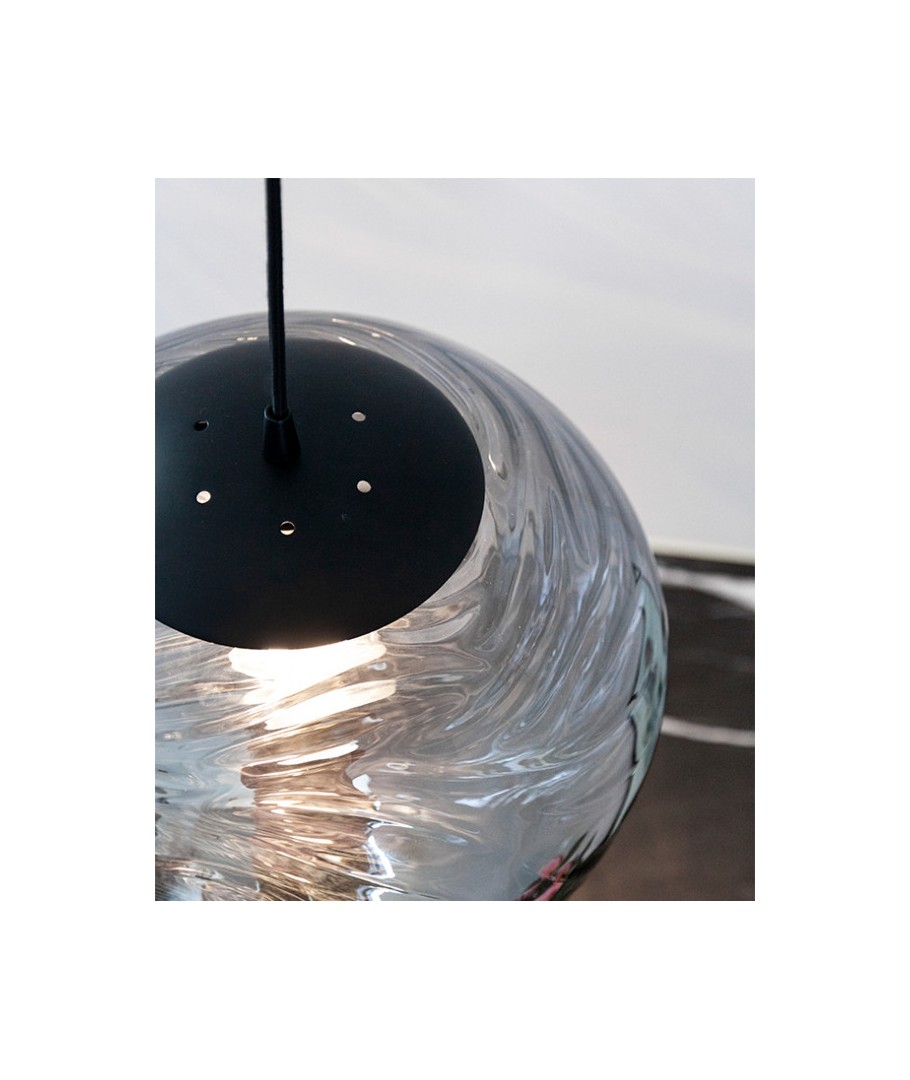 Handmade pendel fra Halo Design er udført et lækkert smoke farvet glas, der med den sin electroplated overfladet der giver en genial flot oveflade. Med sin diameter på 38 cm giver og spreder den lyset i en fantastisk smuk glød. Handmade-lamperne er tegnet af lyseksperten Michael Waltersdorff. Glasskærmen er udført i flot kvalitets glas. Glasset er smoke/røgfarvet som giver et behagelig look and Feel fornemmelse. Toppen som er i sortlakeret metal, giver en smuk og moderne overgang, hvorfra det sorte tekstilkabel føres op til rosetten som monteres i loftet, og derved afslutter lampen elegant. Designet er baseret på Dansk design med tanken om at kombinere et flot lys, der bliver skabt gennem glasskærmen, med det moderne design i et flot og tidsløst design. Skærmen er electroplated der giver en overflade med et tyndt lag silver farvet belægning på den formstøbt glasskærm. Når lampen tændes giver den dermed en flot belysning i rummet. Fatningen er en E27, hvor vi varmt kan anbefale lyskilde fra COLORS by Halo Design, hvilket giver mulighed for at sætte præcis den stemning, der skal være i rummet. Der medfølger formonteret 250cm tekstilkabel i farven tekstil. Handmade-lampeserien findes i flere størrelser samt i 2 farver Opalhvid og Smoke. Handmade pendel - We create light for those who care.