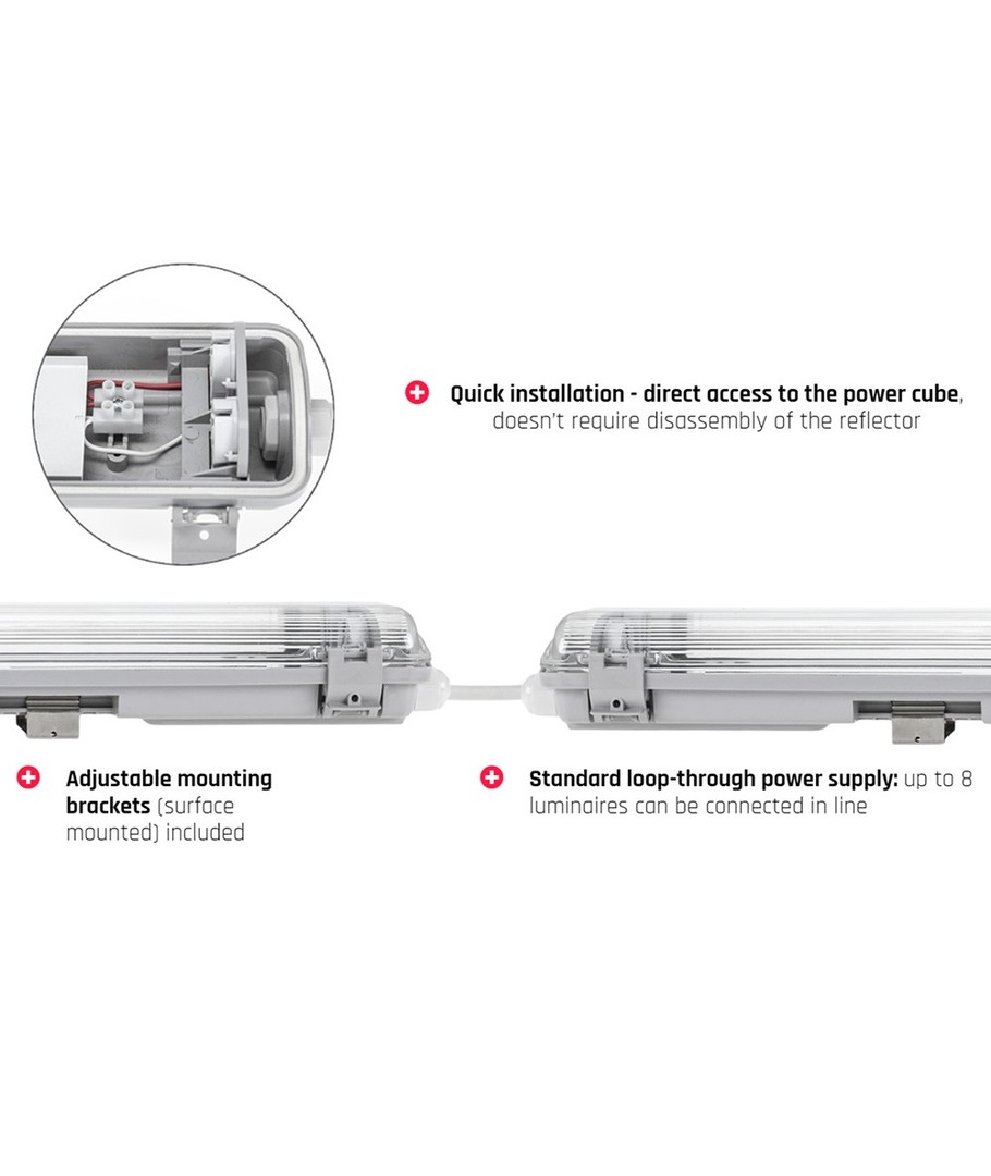 För 2x 120cm LED-lysrör, IP65 vattentät