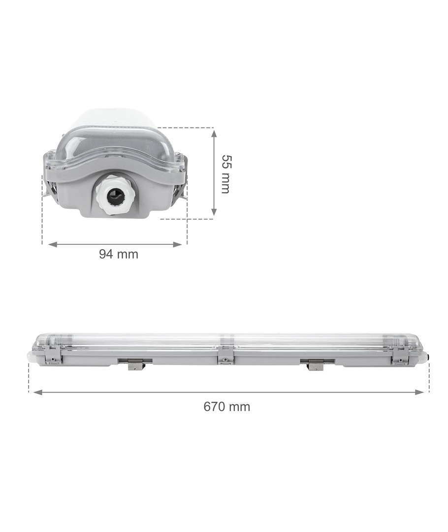 Til 1x 60cm LED-rør, IP65 vanntett