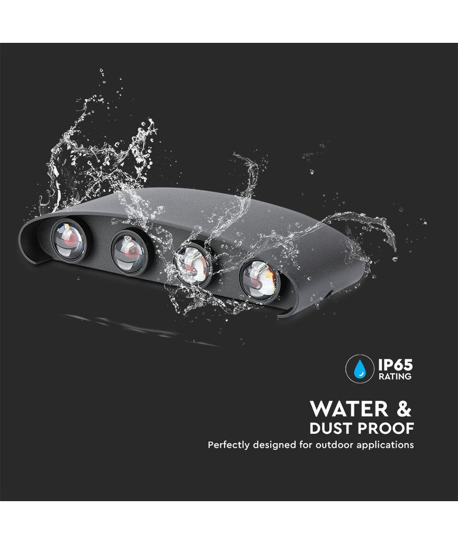 Målene på lampen er 220 x 48 x 90 mm, og med sin IP65 beskyttelse er den designet til at kunne modstå vandstænk og regn, hvilket gør den velegnet til udendørs brug.