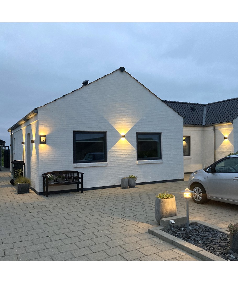 Denne sorte opp/ned vegglampe fra danske LEDlife, er designet med fokus på estetikk og kvalitet. Vegglampen har justerbar spredning (10-120 grader) i både topp og bunn. Denne funksjonen er svært populær fordi det ofte hever bygningens utseende og gir et moderne og elegant uttrykk. Lampen er vanntett og kan derfor brukes både inne og ute.