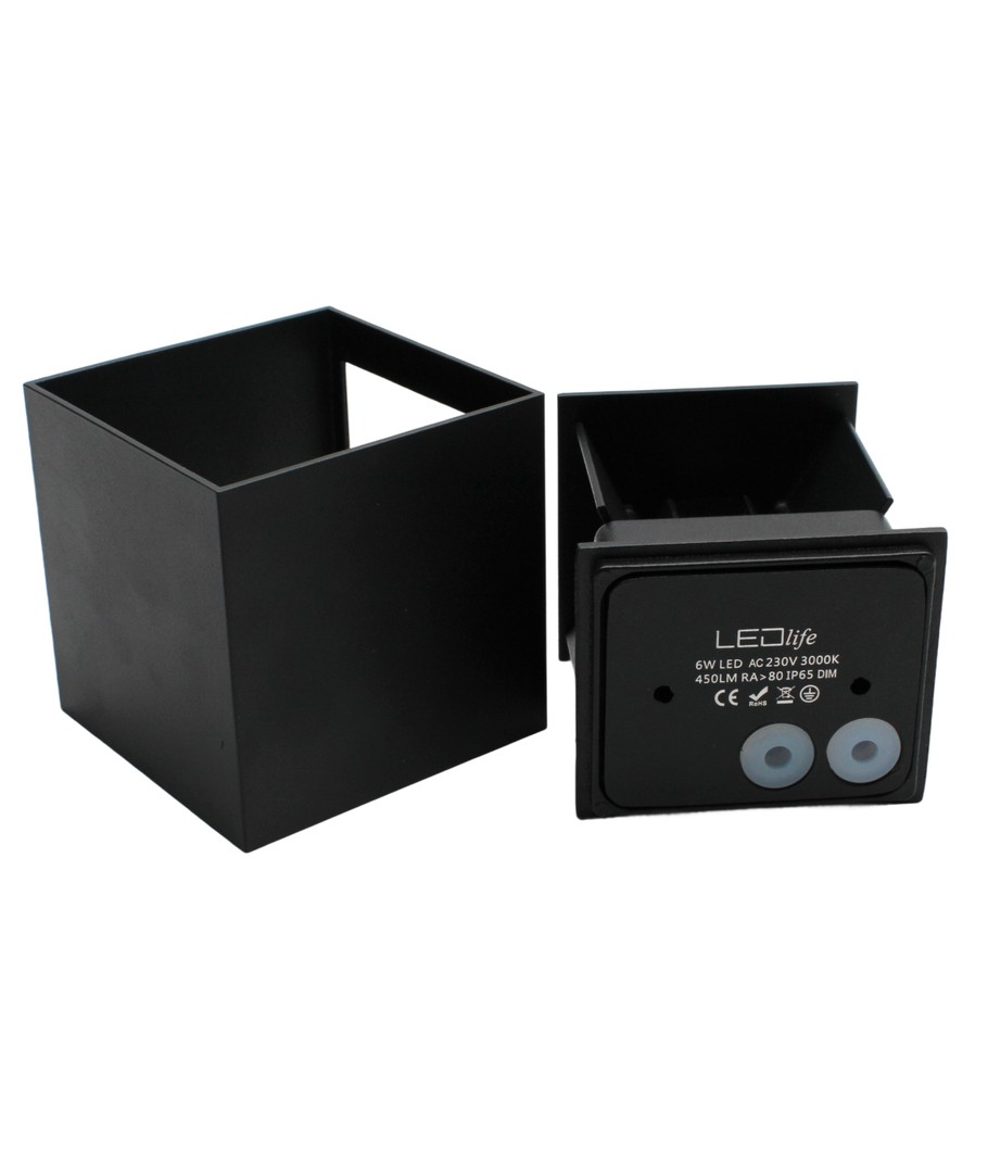 6W CUBIC PRO vegglampe - IP65, sort, viderekobling, justerbar, firkantet, opp/ned, inne / ute, inkl. lyskilde LEDlife Utvid