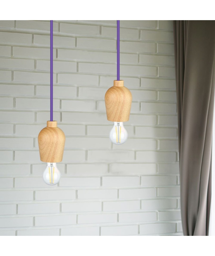 E27 Træ Pendel Lampe med lilla ledning er en stilfuld belysningsløsning til moderne indretninger.